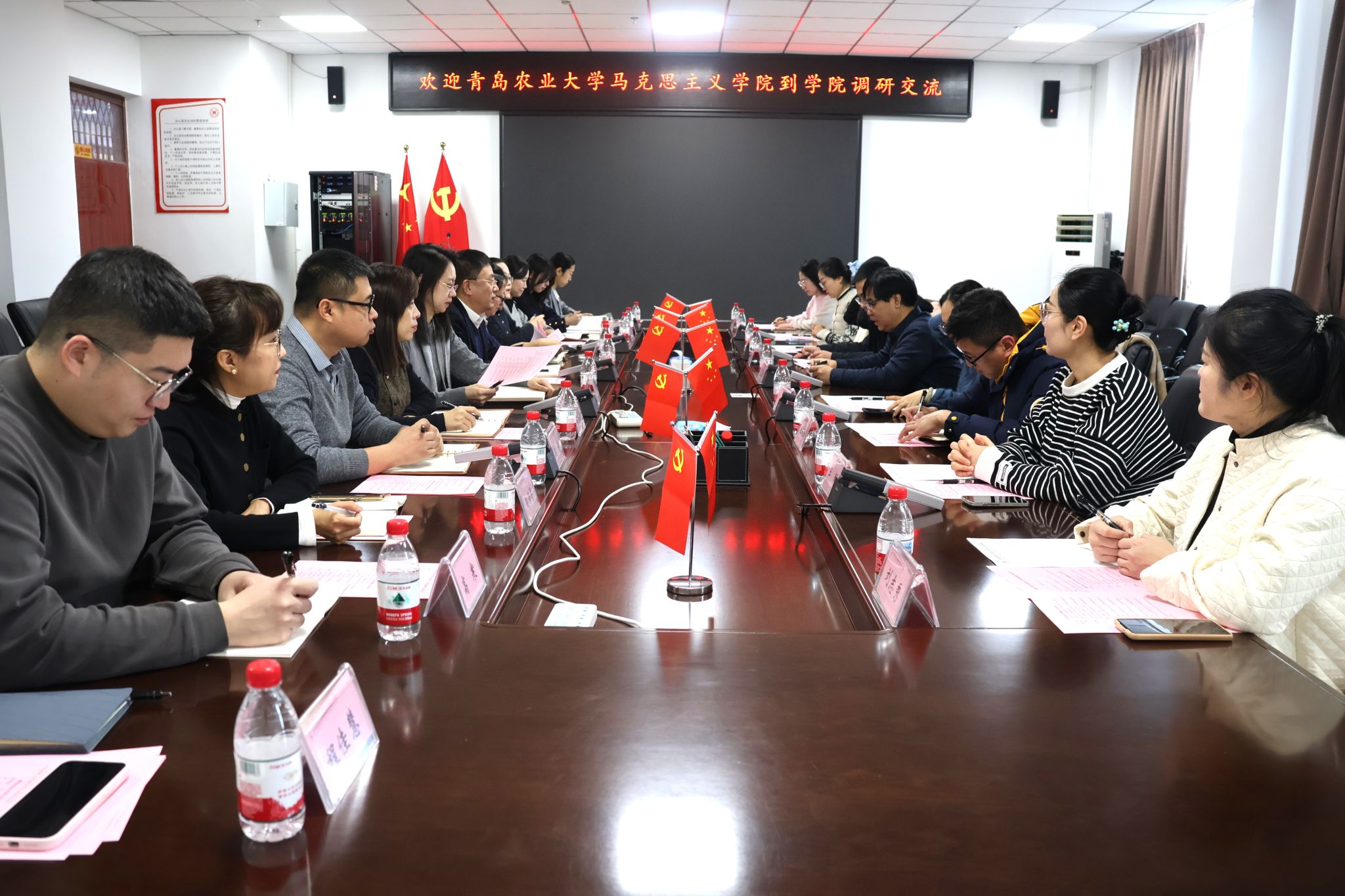 为加强校际交流合作,12月25日,青岛农业大学马克思主义学院工会主席董景翰一行到我校马克思主义学院调研交流。马克思主义学院副院长刘大勇出席座谈会,全体习近平新时代中国特色社会主义思想概论教研部教师参加交流座谈,会议由习近平新时代中国特色社会主义思想概论教研部主任于静主持。
