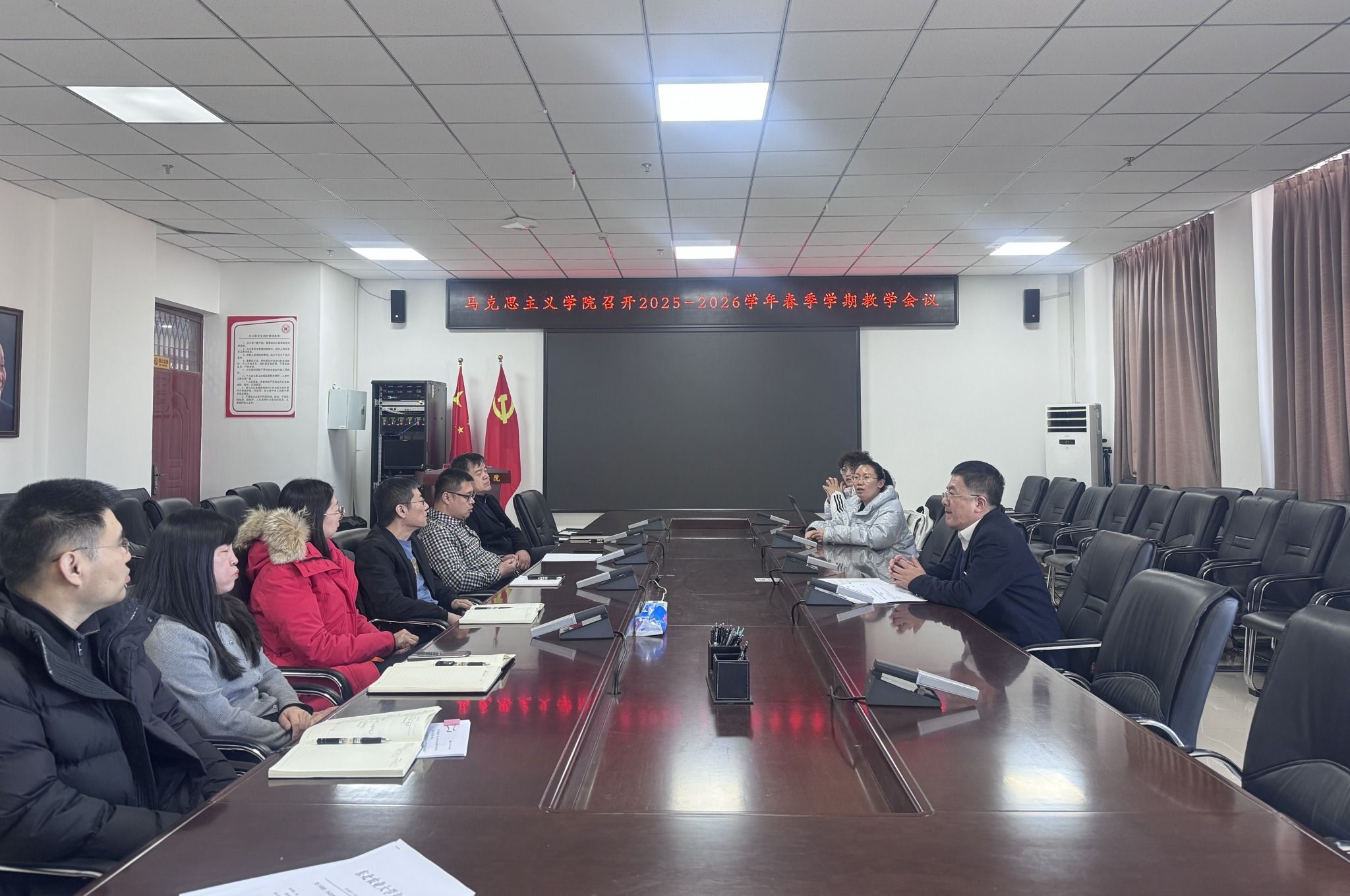 为扎实推进新学期思政课教育教学高质量发展,落实立德树人根本任务。2月26日,马克思主义学院召开2025-2026学年春季学期教学会议。学院副院长刘大勇与各教研部主任参加会议,会议由刘大勇主持。