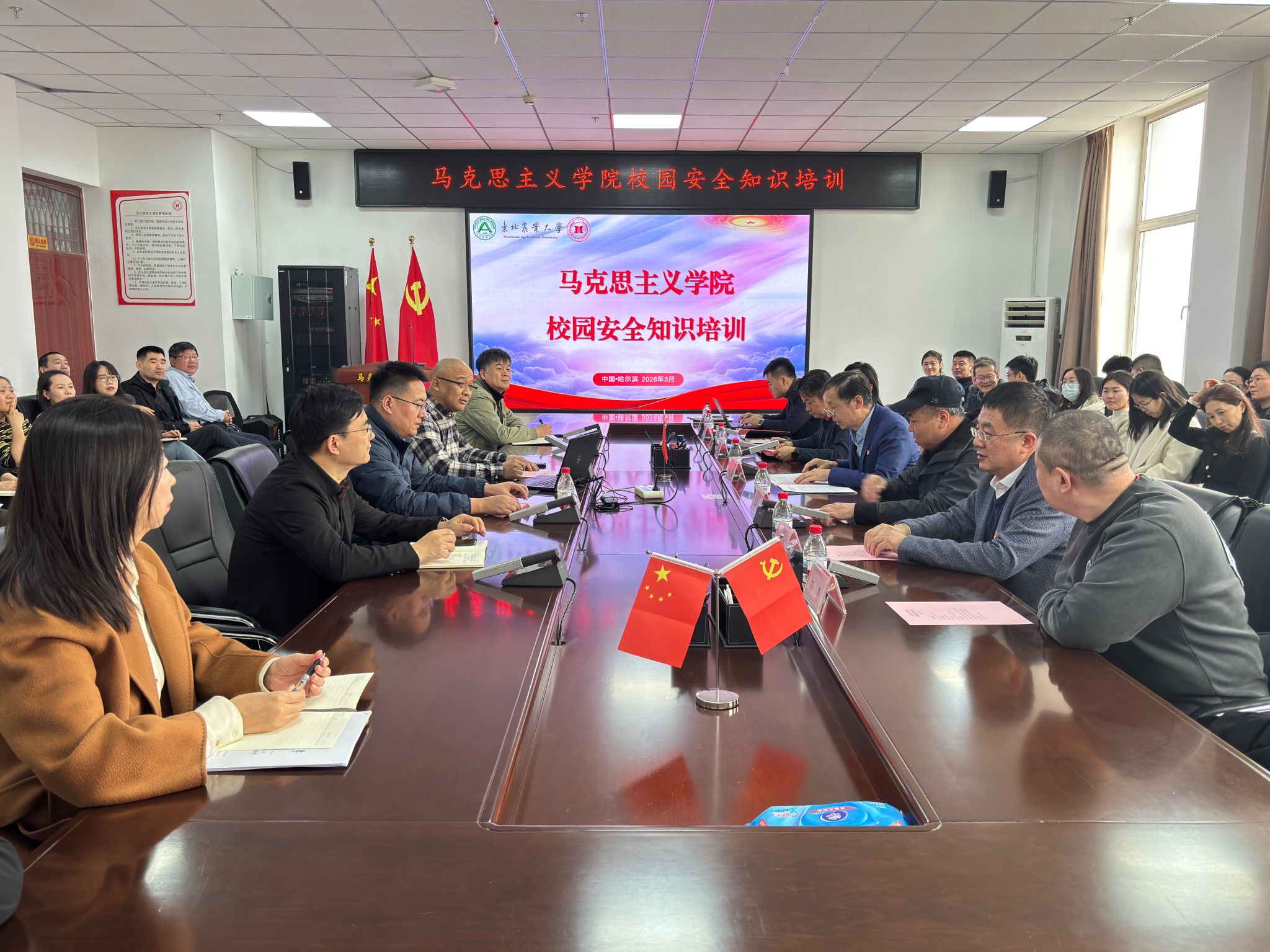 学院高度重视安全工作,召开了2026年春季学期安全工作会议,各教研部主任于会上签署安全责任状,不断强化了“安全第一、预防为主”的思想防线。下一步,学院将继续立足制度建设、设施优化、秩序管控、服务提升多维发力,以实效为导向筑牢安全根基,为构建安全、有序、文明的校园环境注入强劲动力。